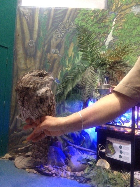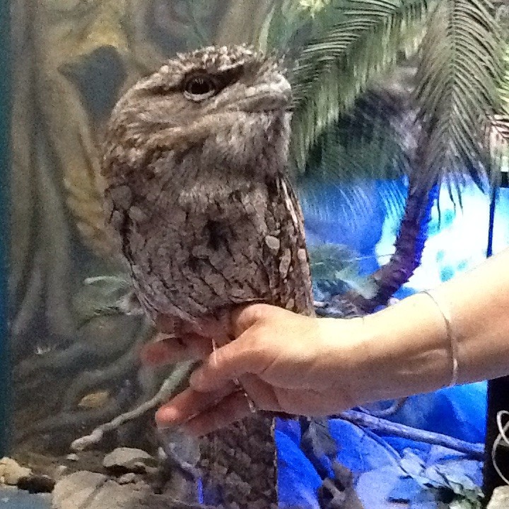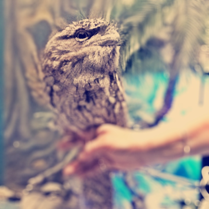 The Tawny Frog Mouth has no room for eye muscles.